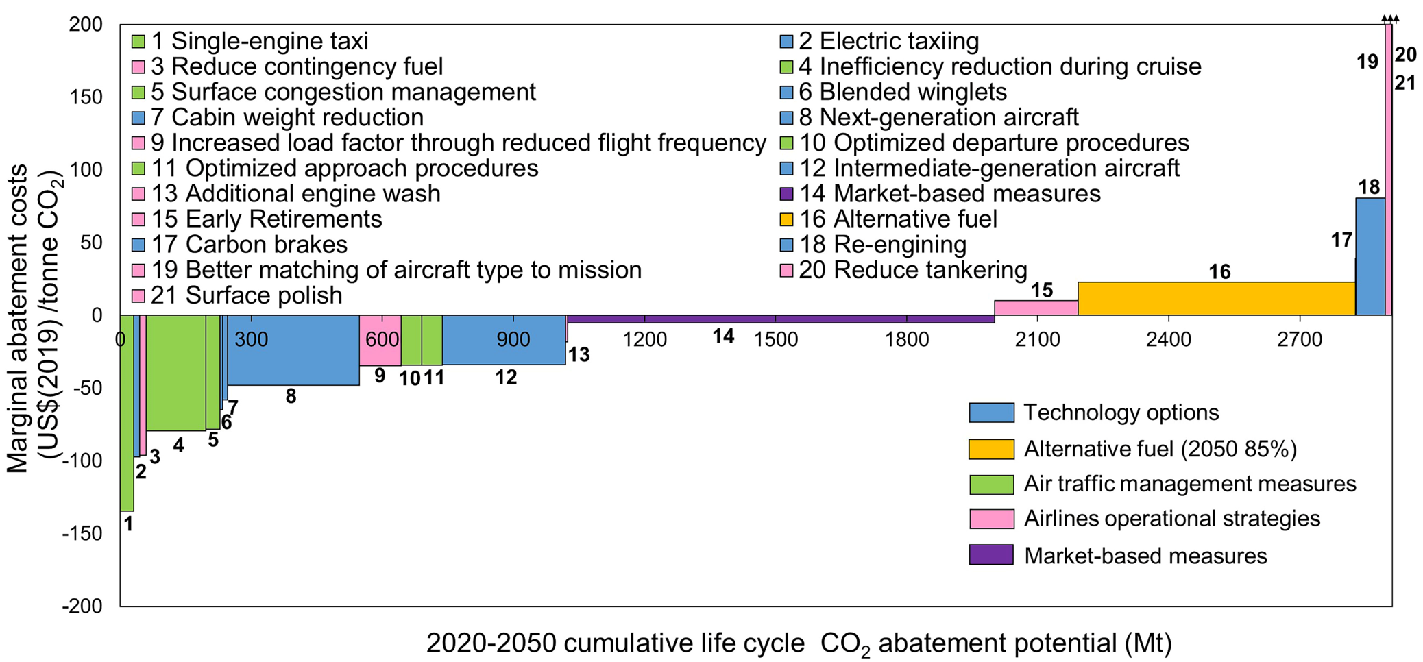 The aviation industry's massive scale, indispensability, and its characteristic of operating within a cross-border and cross-policy framework make the dual carbon issues associated with it complex and multilateral. Due to its heavy reliance on fossil fuels, the aviation industry, although not the largest carbon emitter, is considered a "hard nut to crack" in terms of emissions reduction. A revolutionary replacement for fossil fuels is not something that can be achieved in the short term, and the aviation industry faces a daunting decarbonization challenge. Currently, global mechanisms for carbon reduction in aviation are not fully matured, and regional market-based policy tools or single reduction schemes alone cannot achieve the industry's emissions reduction goals. To realize sustainable, green, and low-carbon development in aviation, a multifaceted approach is required. It necessitates simultaneous efforts and the coordinated consideration of multi-level and multi-domain measures for aviation emissions reduction.